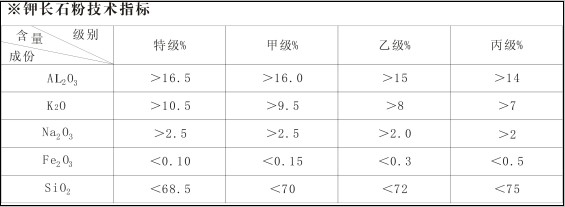鉀長石是一種富鉀的硅酸鹽礦物。 具有熔點低,熔融間隔時間長,熔融粘度高,流動性小等優(yōu)點。是玻璃、陶瓷以及電焊條等生產(chǎn)企業(yè)所需的大宗原料。長石的氧化鈦<0.02%,燒矢量0.54,硬度波動于6-6.5,性脆,有較高的抗壓強度,對酸有較強的化學(xué)穩(wěn)定性,用途;制造平板玻璃,中鹼玻璃,玻璃器皿,陶瓷釉料,高壓電瓷等。 我司生產(chǎn)各種品質(zhì)的鉀長石粉、(精制品鉀長石粉,優(yōu)質(zhì)品鉀長石粉,一級品鉀長石粉,二級品鉀長石粉,普通鉀長石粉)總供貨量80000噸/年。