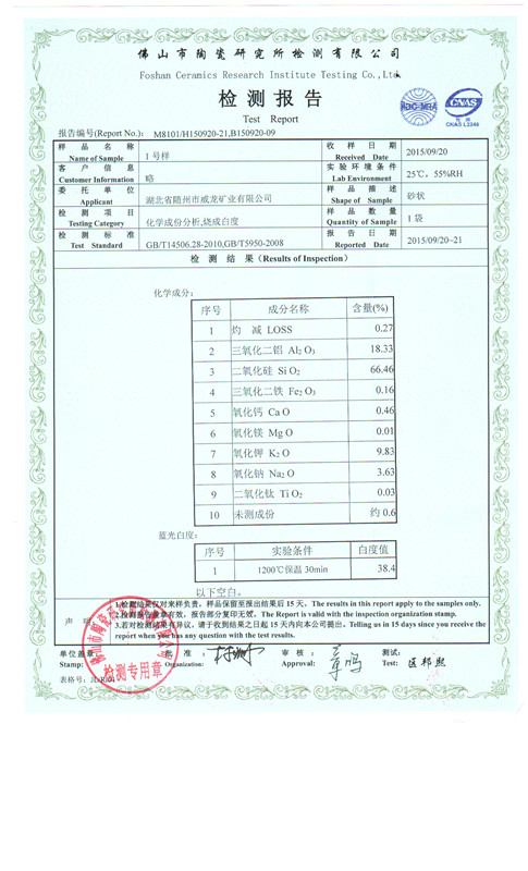 鉀長石粉檢驗報告